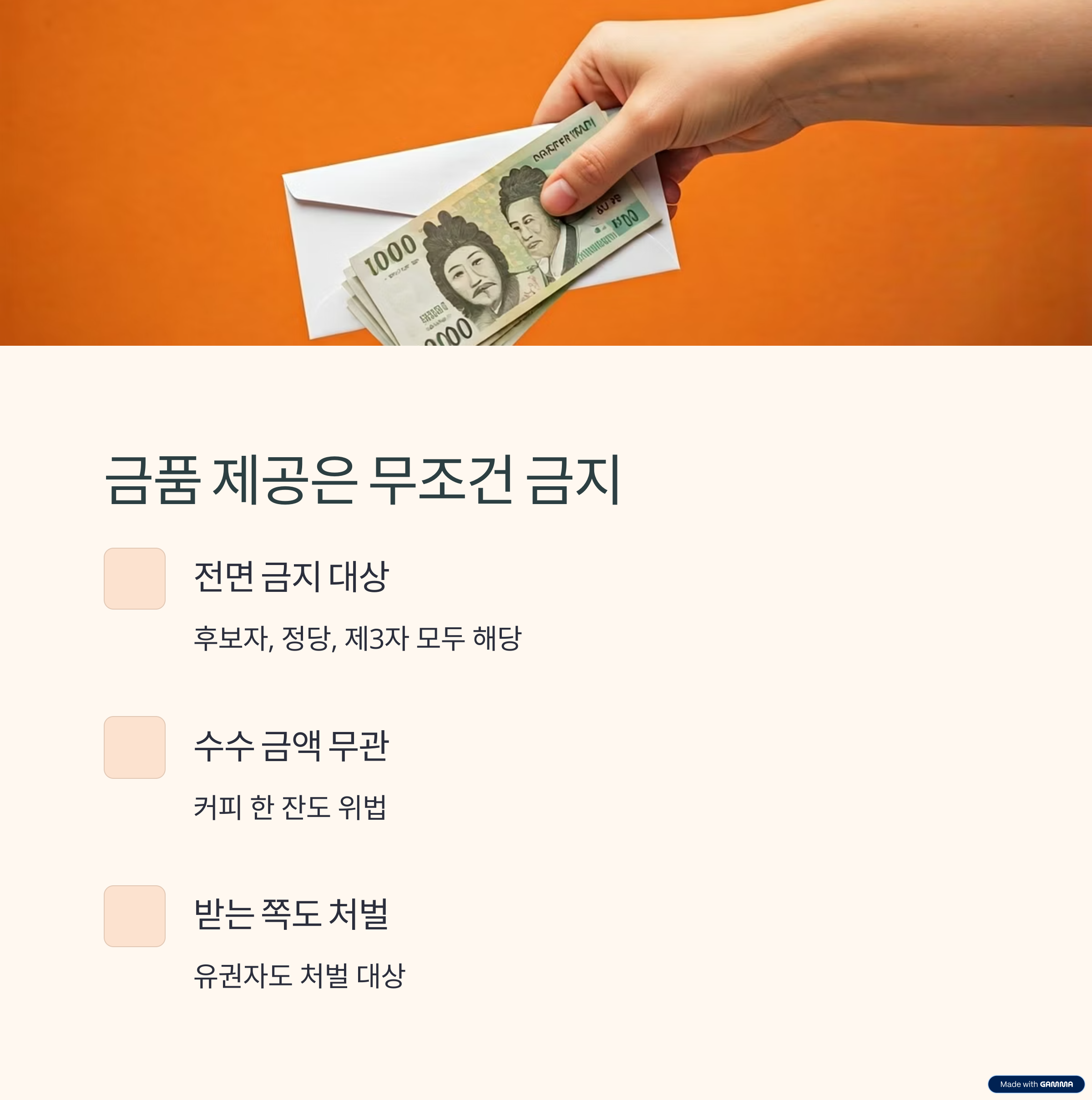 금품 제공은 무조건 금지, 예외 없다