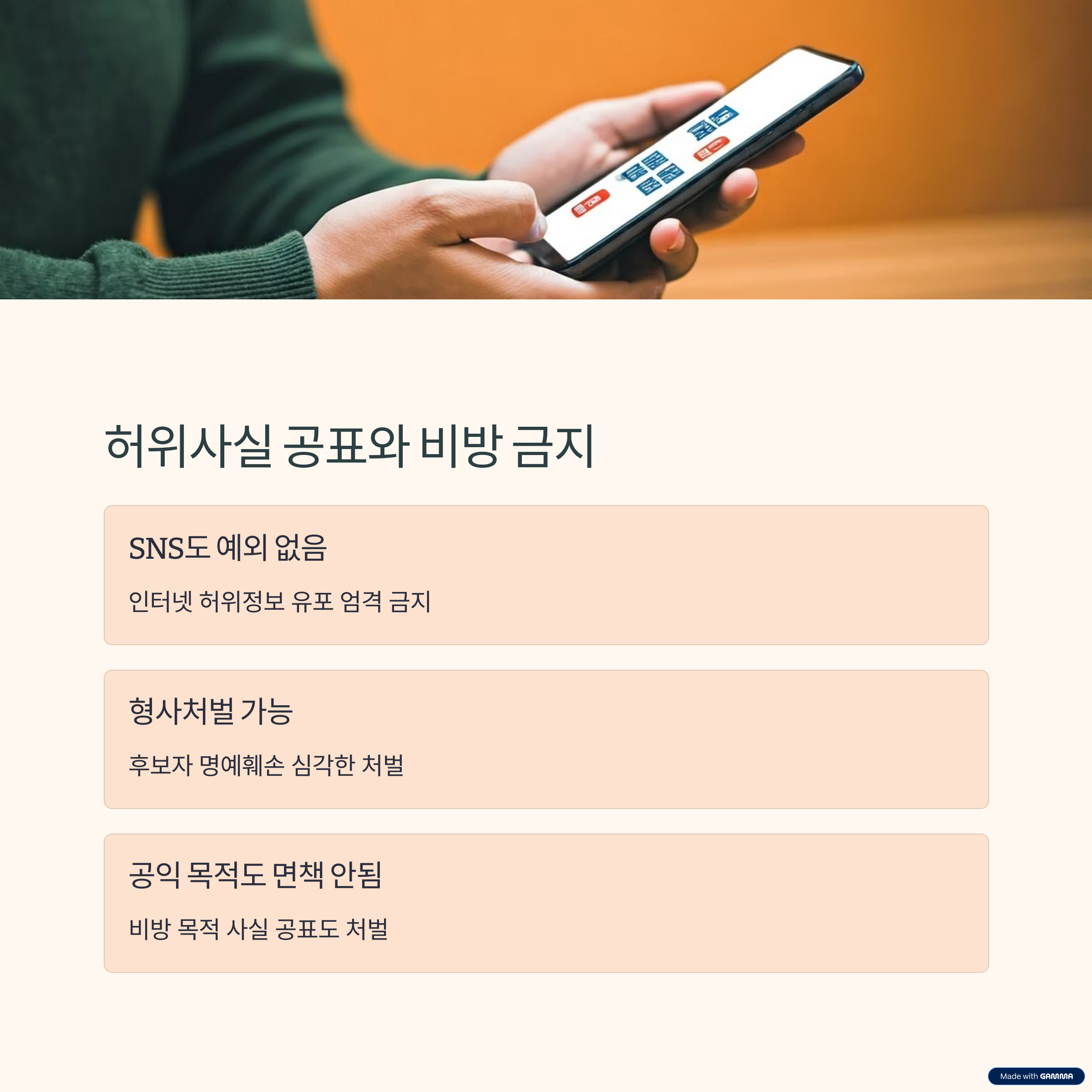 | 허위사실 유포 | 모든 시민 | 7년 이하 징역 가능 |