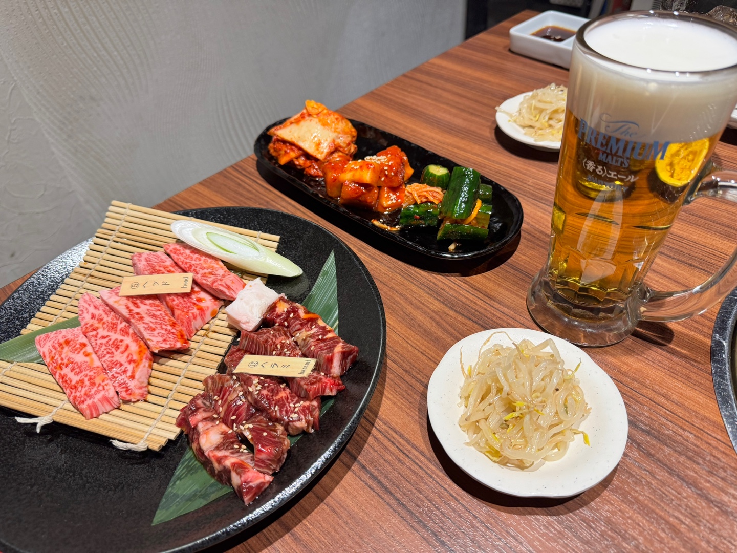 분위기는 작고 아늑한 느낌. 특이한 점은, 우리가 간 날 손님 전원이 한국인이었어요. 개인 공간처럼 꾸며져있지만 약간 구분만 된 곳이라 옆자리 소리가 잘 들렸는데 이미 안쪽 2곳도 한국인 저희도 한국인 끝나고 나오는데 기다리시는 분도 한국인 그냥 즉흥적으로 고른 곳인데 블로그나 SNS에서 입소문을 탔나봐요. 추가로 시킨 김치도 가격대비 꽤나 잘 나왔어요 참 일본은 자릿세 개념으로 기본 측정되는 가격이 있어요! 숙주가격이라고 생각하시면 될듯 해요.