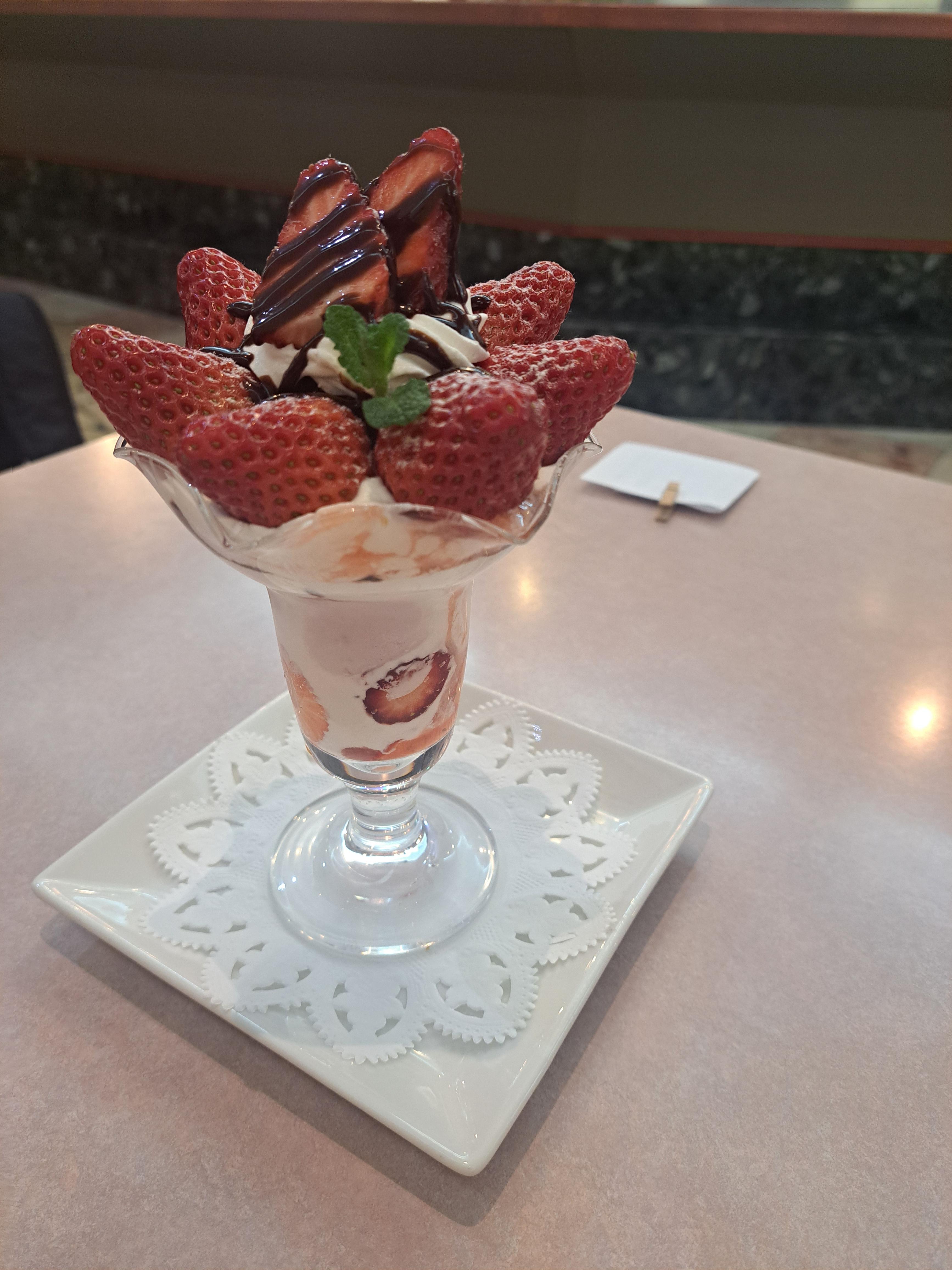 사실 파르폐는 보는거 100점 먹는거 50점이라고 생각해서 젤 화려한걸로 시키려다가 귤이 유명하니까 좀 덜 화려해도 시켜봤는데 맛이 너무 너무 훌륭해서 행복했어요. 딸기 파르페는 그보단 좀 못하긴 했지만 그래도 맛있게 잘 먹었습니다.