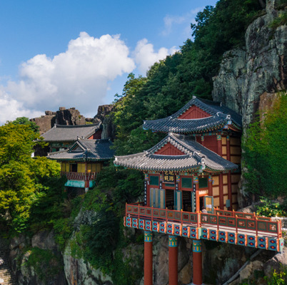 - 주불전 앞 – 절벽 아래로 펼쳐진 파노라마 뷰