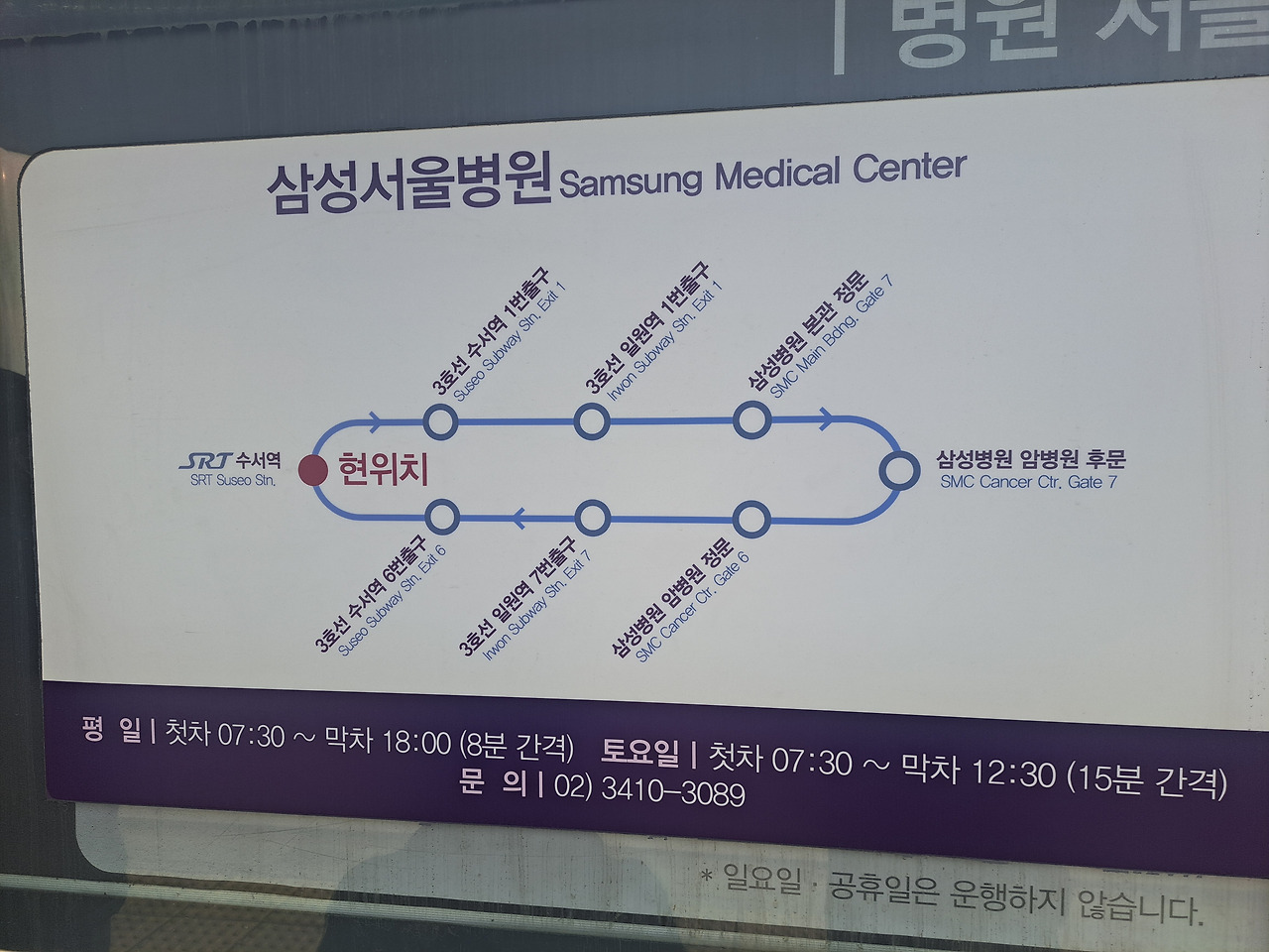 - 🏥 병원 출발 위치: 삼성서울병원 본관 정문 및 암병원 후문