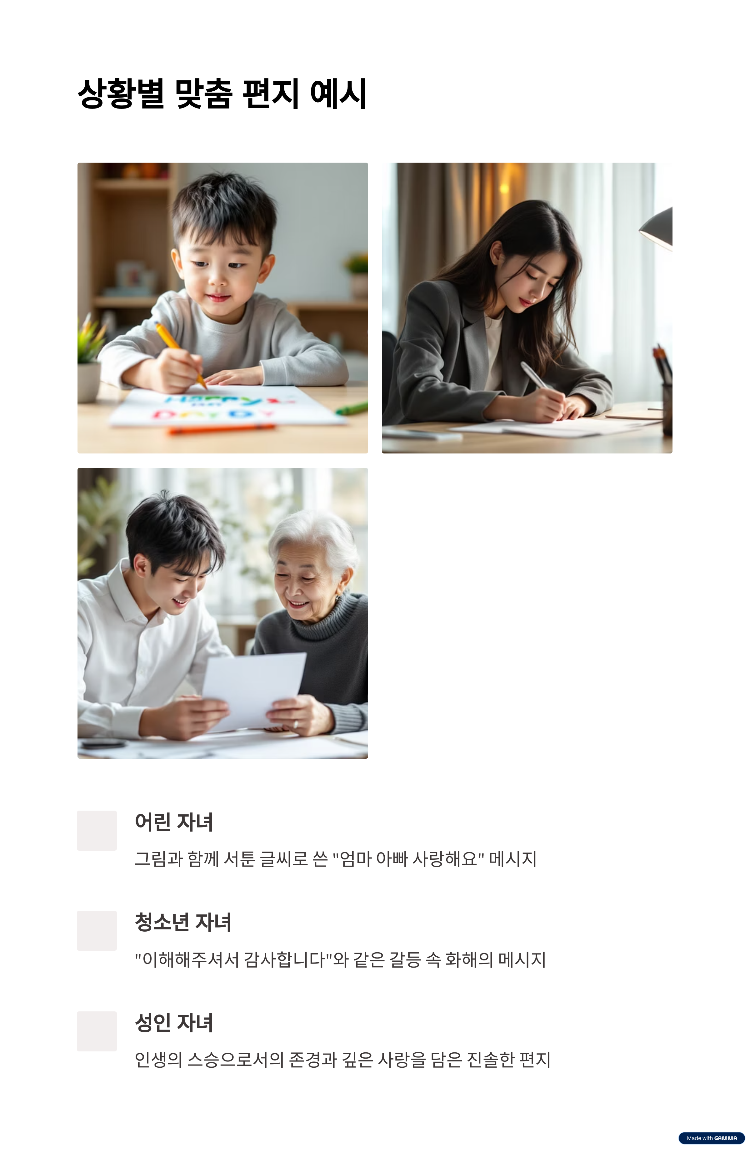 상황별 예시 모음 - 유년기, 청소년기, 성인 자녀 편지