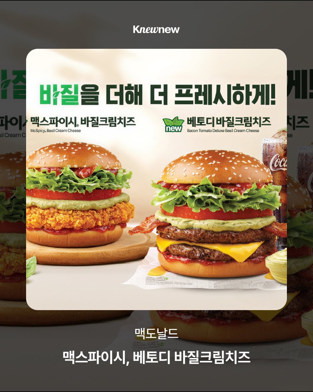 ❷ 맥도날드 (@mcdonalds_kr) 맥스파이시 바질크림치즈, 베토디 바질크림치즈 🌿🧀