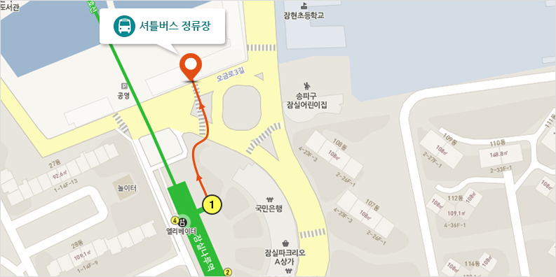 - 잠실나루역 1번 출구 → 셔틀버스 또는 도보(10분)