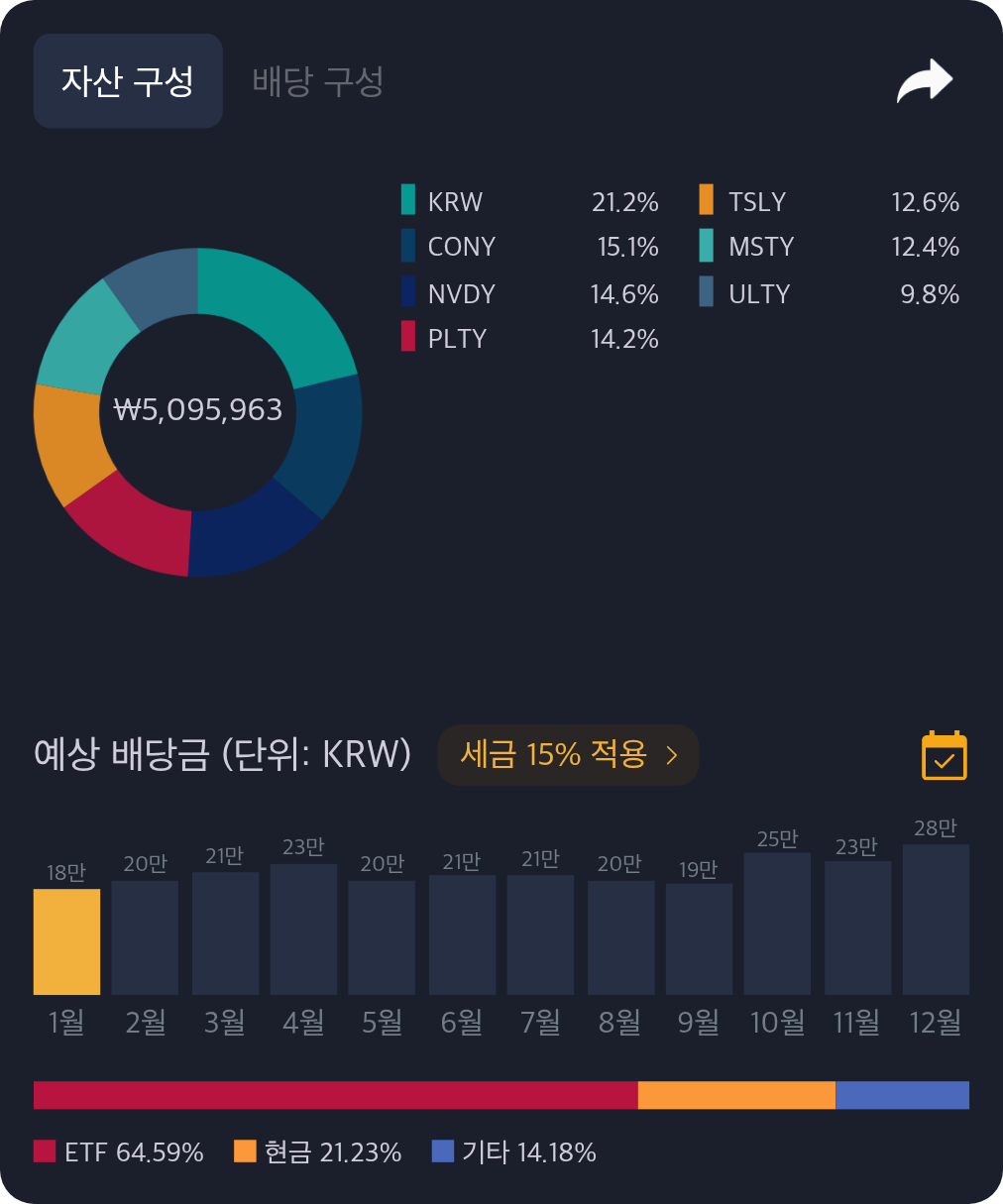 - 투자 대상: MSTY, ULTY, CONY, TSLY, NVDY, PLTY
